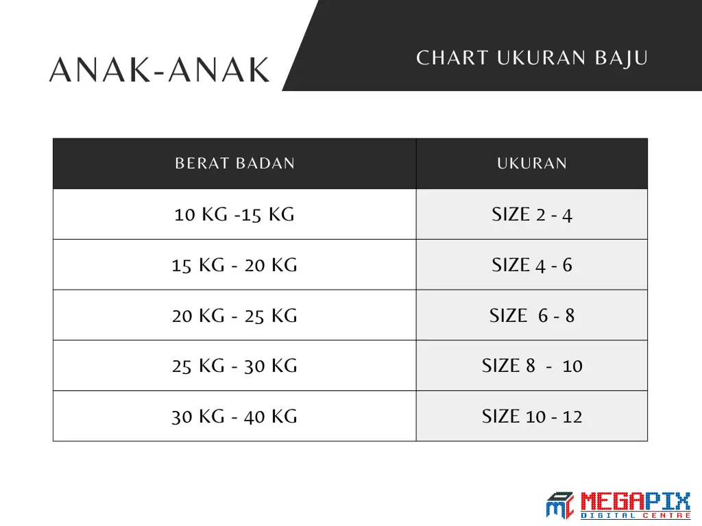 Ukuran anak biasanya dinyatakan dalam angka yang menunjukkan rentang usia atau berat badan: