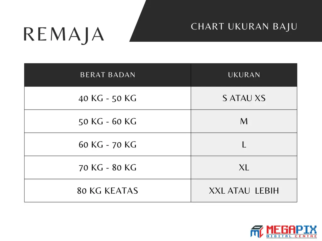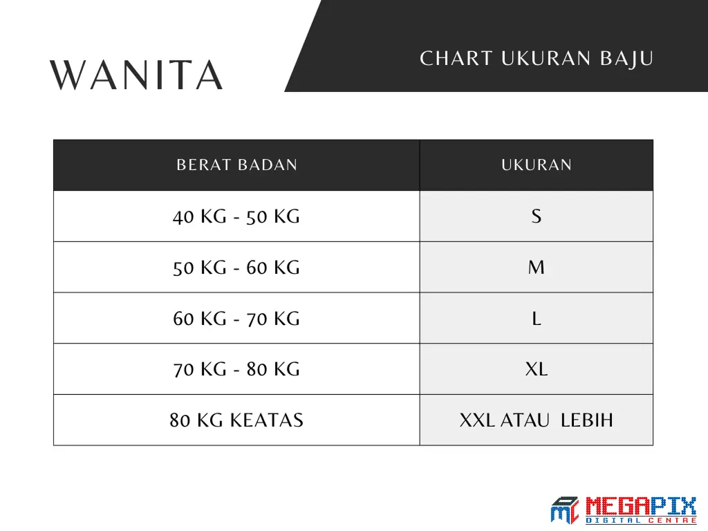 Ukuran Baju Berdasarkan Berat Badan